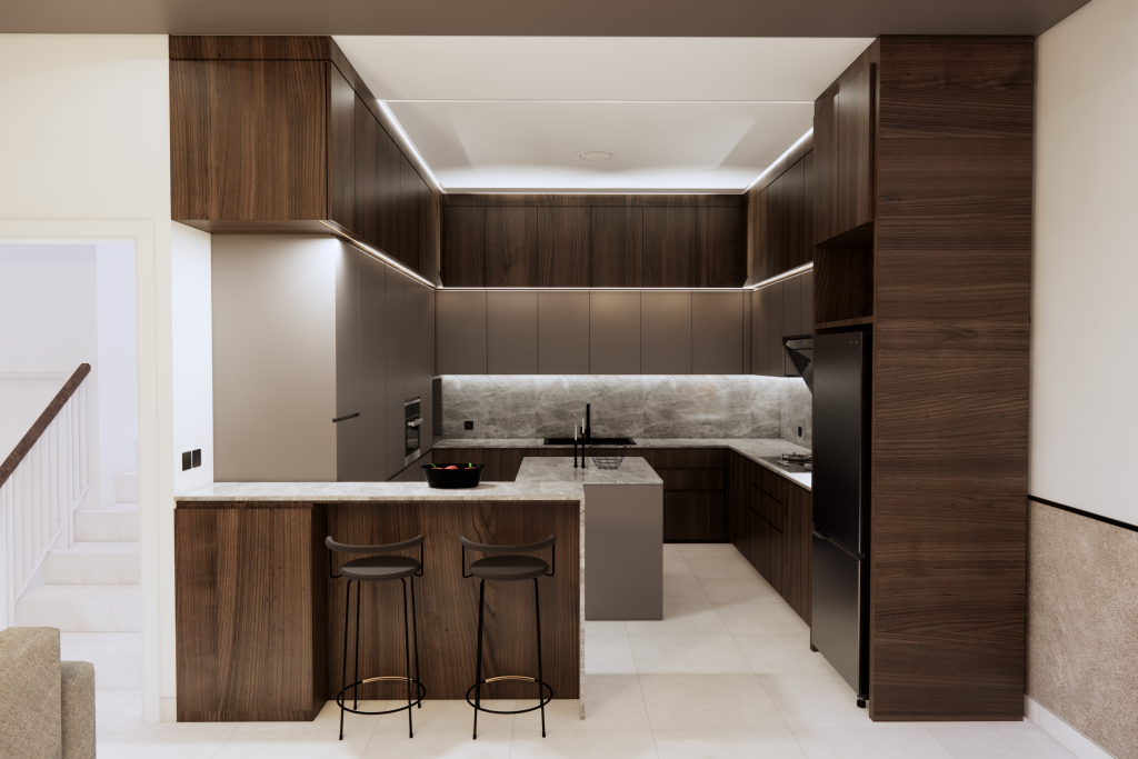 With dark aesthetics, Greenlake America strives to produce a luxurious yet cozy atmosphere. This is achieved with the use of deep wood color adorned with black metal and glass. Every nook and cranny is completed with natural and artificial lighting, giving a soft glow to the dark materials.