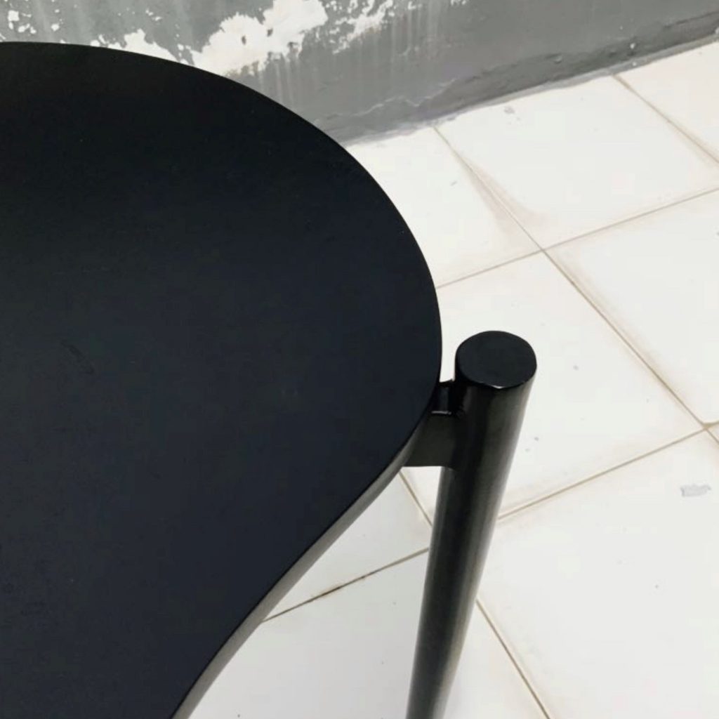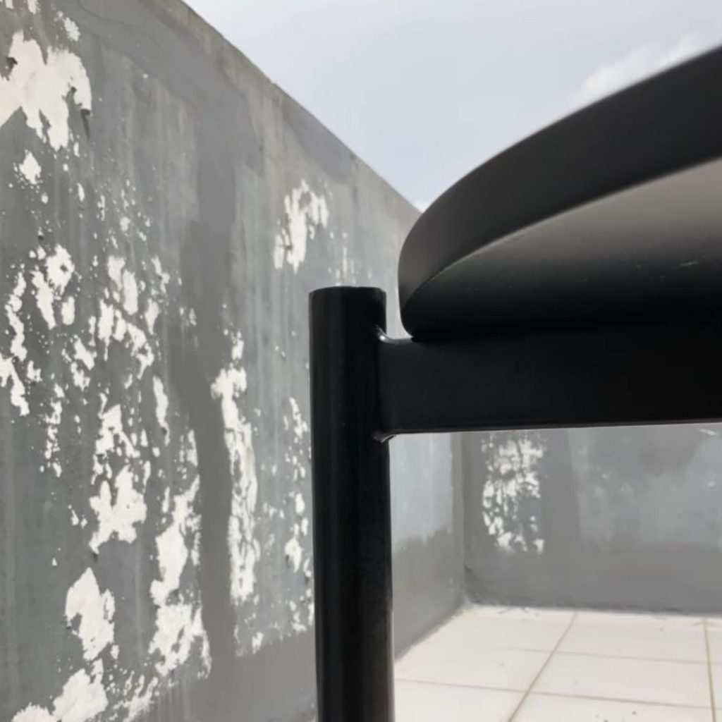 Iza Stool is made to match Markette by Mercy’s organic, curvilinear design. There is only one color variant; black matching the shelves and tables.