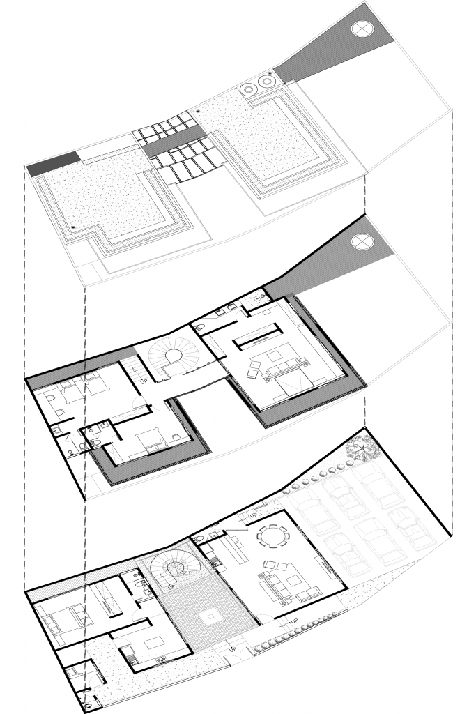 Semabung House carries a deep locality and hints of medernism within its design. The use of stones and roster wall provides symmetry to the building, and the materials are left bare to further accentuate it. The roof, unlike traditional houses in Indonesia, is built as a rooftop for multi purposes.