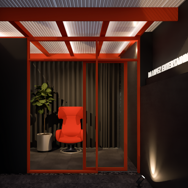 Studio Da Lopez is a 35m2 interior project equipped with a total of three rooms. The first room consist of a chair for recording purposes. The curtain provides acoustical function as well as access to the next room. The podcast room are designed with a trendy, futuristic vibe with continuous lines from walls to ceiling.