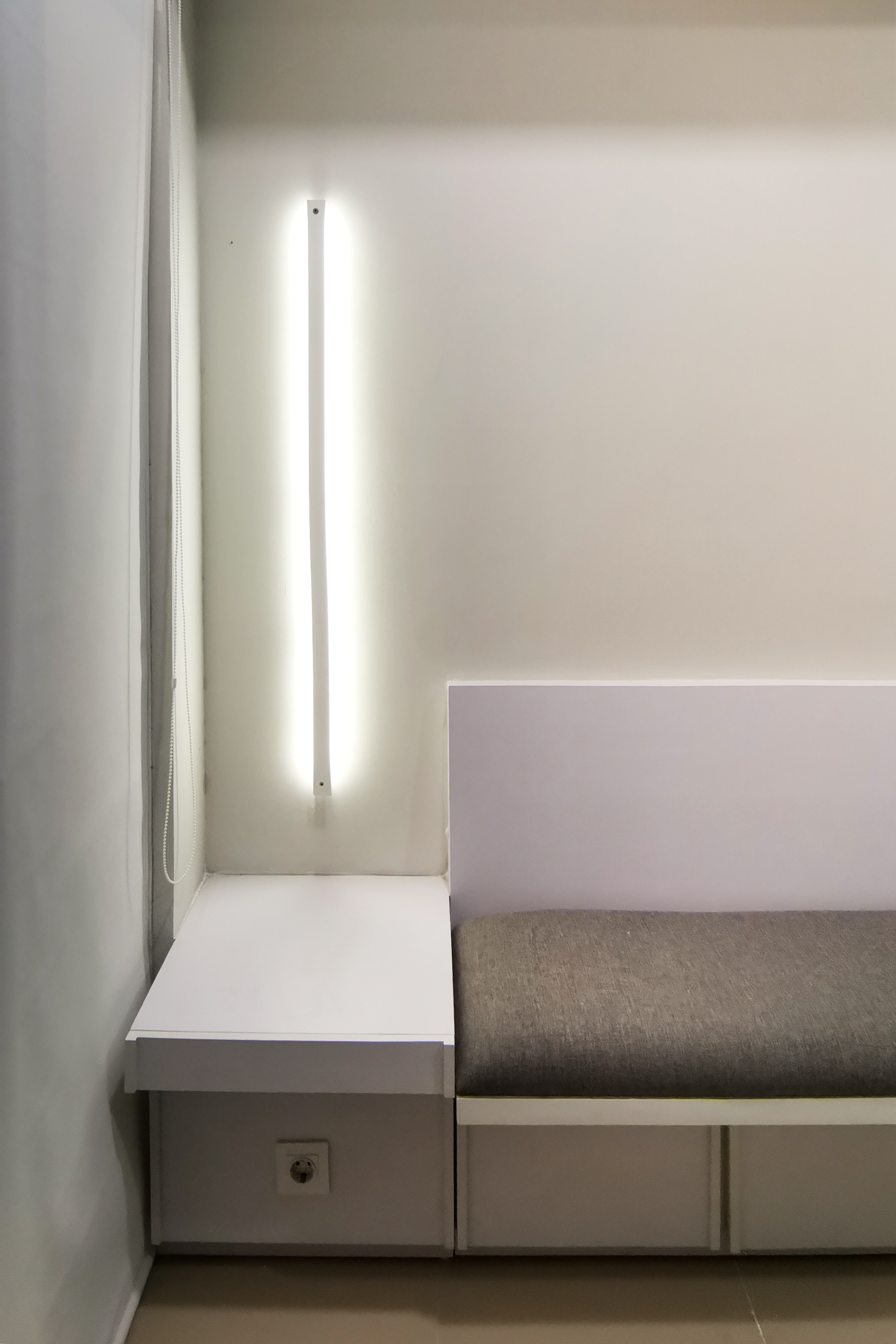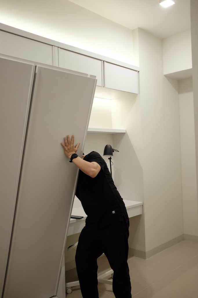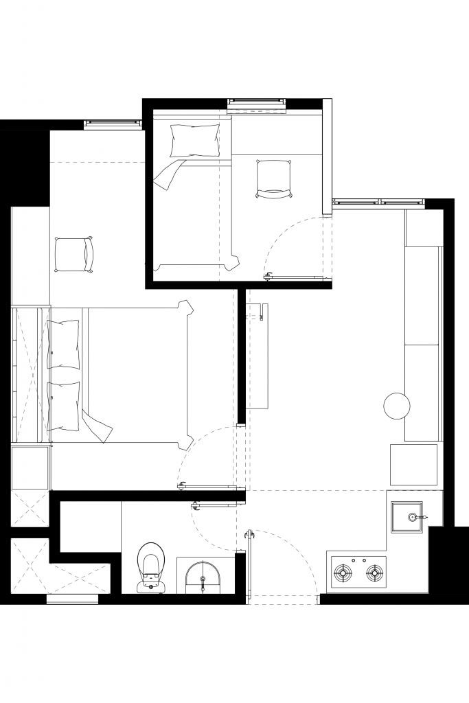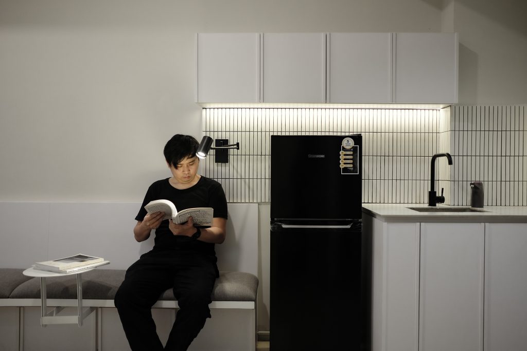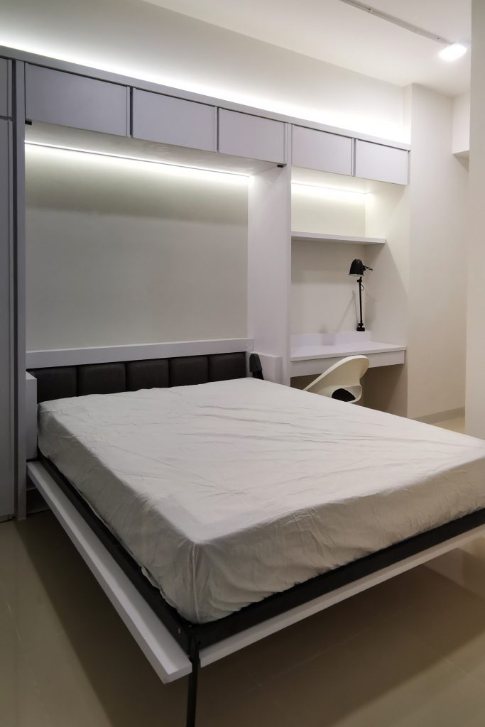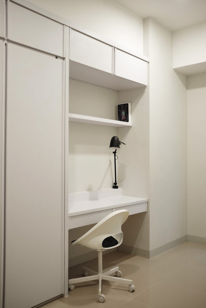 VIA Apartment enhance the small space of the apartment with a minimalist and collapsible design. To increase circulation around the apartment, the mattress is designed with a pivot join so that it could be stored on the wall. The clean, white color of the room gives an illusion of a larger space.